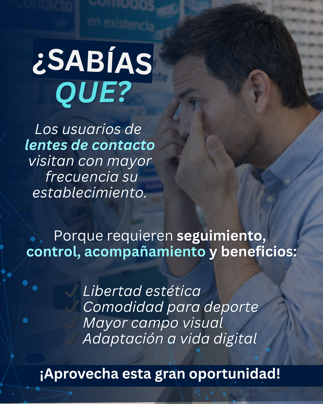 Impulsar acciones concretas en los establecimientos para aumentar la adopción de lentes de contacto.