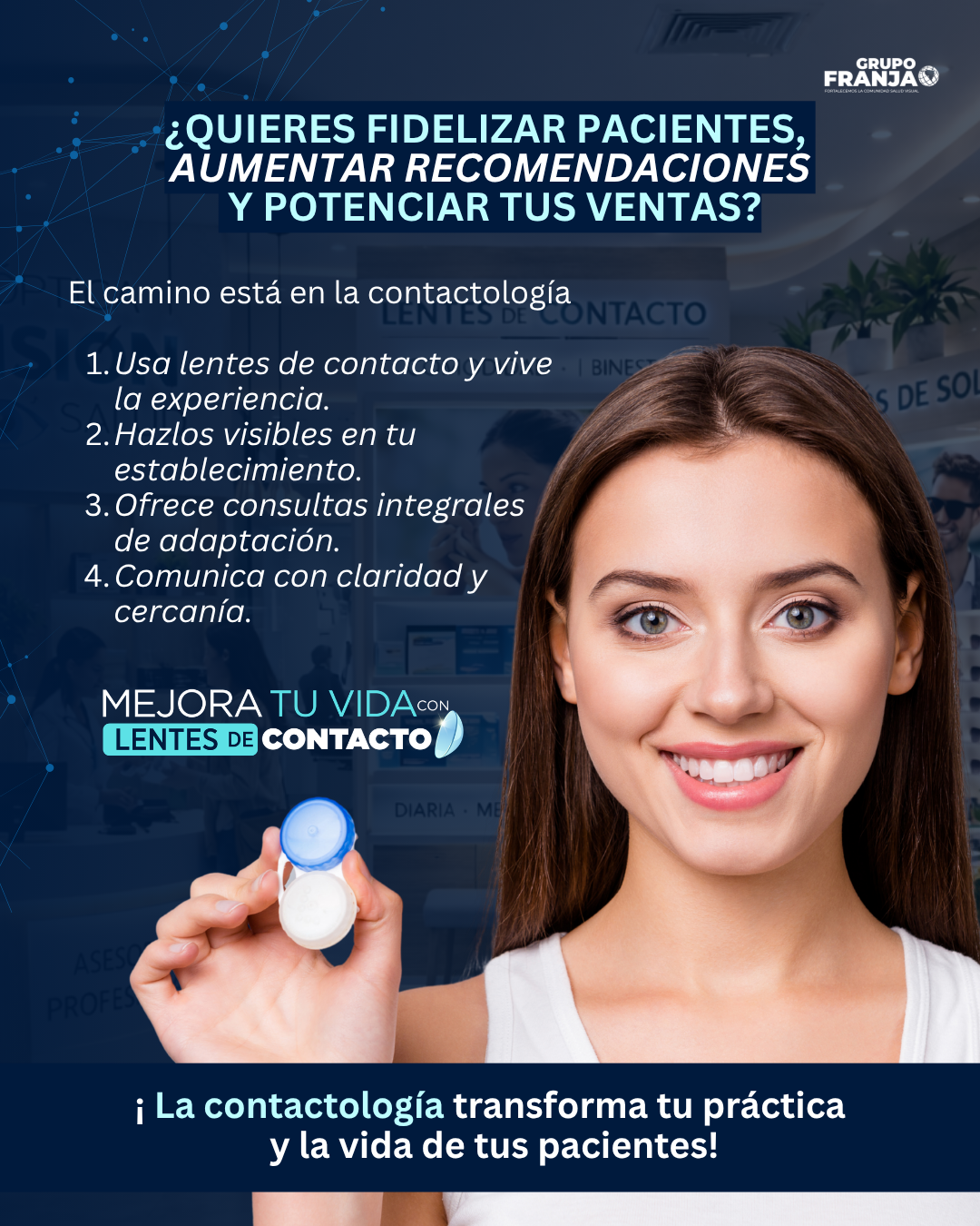 Motivar a los profesionales de la salud visual a recomendar lentes de contacto como una alternativa real para sus pacientes.