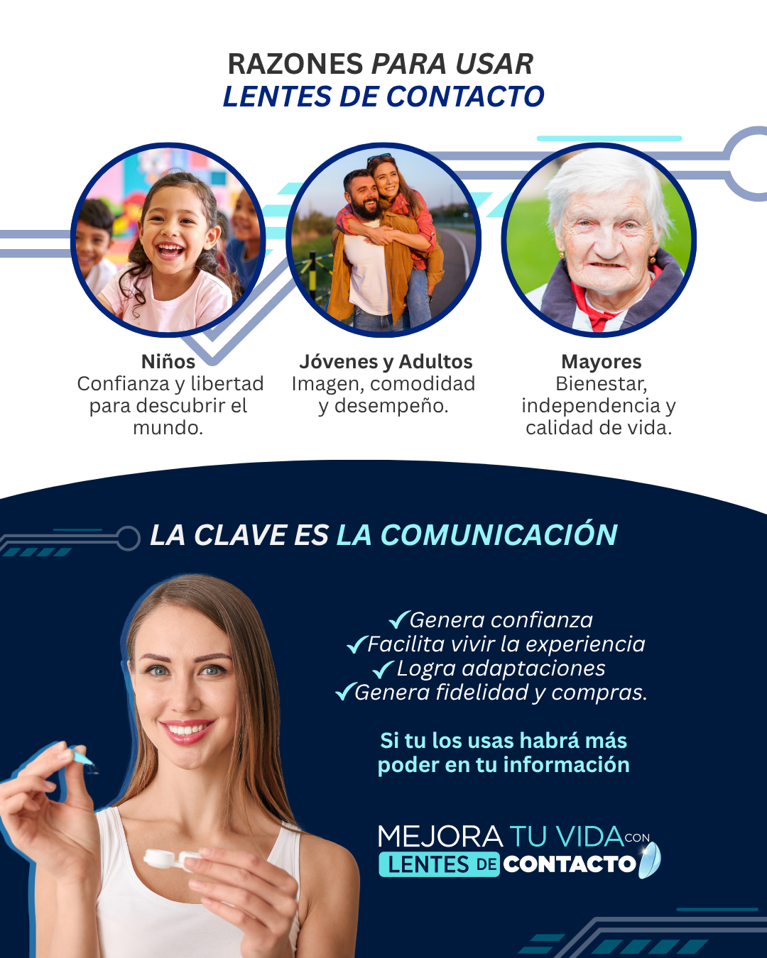 Fortalecer el conocimiento del profesional sobre el potencial de los lentes de contacto como solución visual moderna.